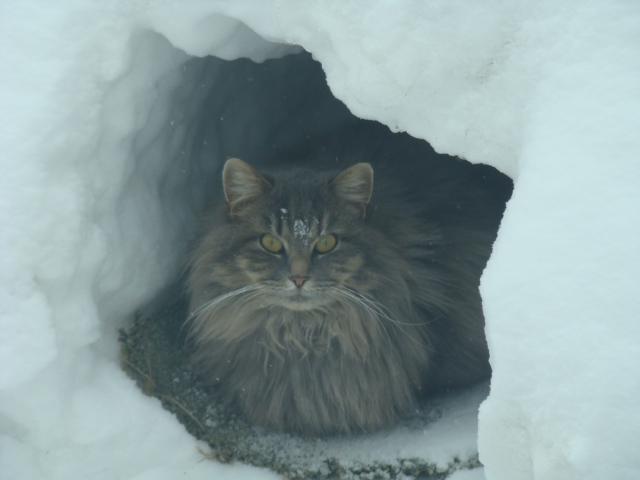 Reports Doris G. of Randolph, Minnesota: “Our cat enjoys the winter. My husband made her a snow tunnel that she loves be in.”