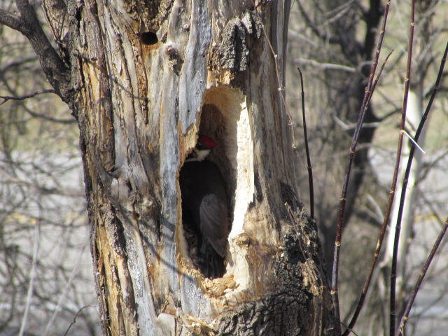 Doris G. of Randolph, Minnesota: “The picture of the pileated woodpecker that was sent in by Raindancer of North Oaks reminded me that a pair of pileateds arrived here and stayed about a week. Each day, one or the other would start in hammering on the trunk of an old storm-damaged tree. We never did see the two together.