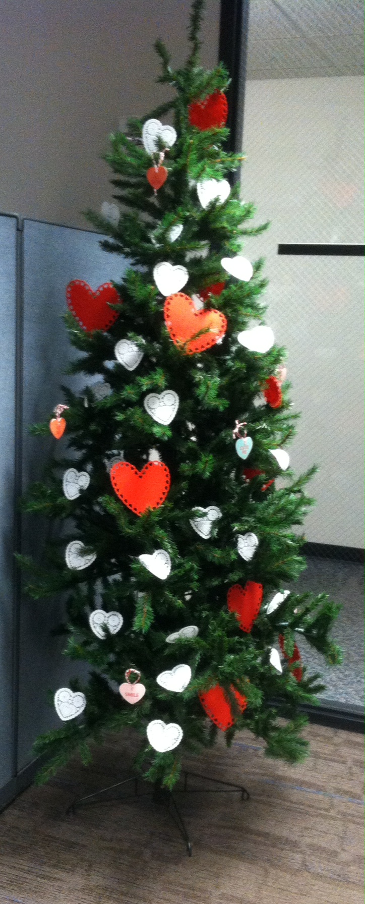 “Last year, we kept the tree up all year at work, and I changed out the decorations as needed. It was a big hit, so I’m doing it again. This is the Valentines tree.”