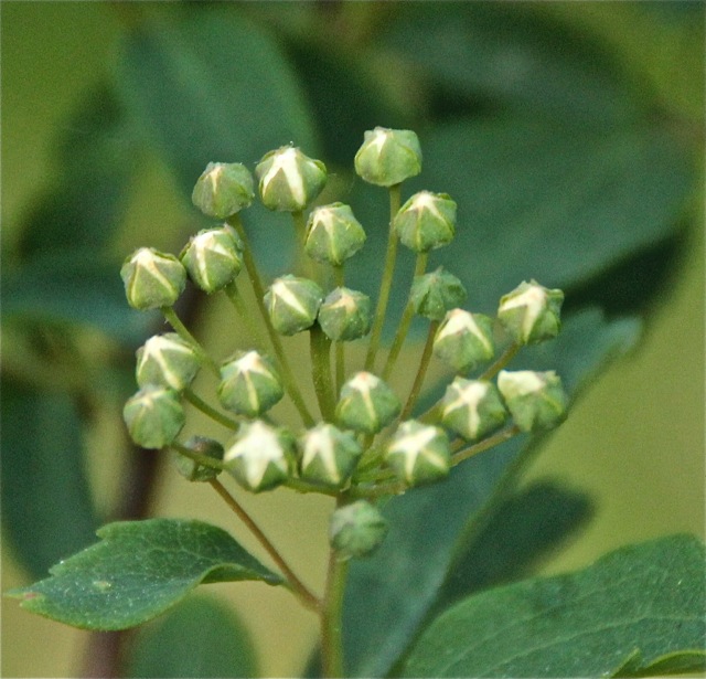 Mounds View Swede writes: “Another plant my mom loved to have was Bridal Wreath, one on each corner of the front of house I grew up in. When we got our current house in Mounds View, I planted two Bridal Wreaths. This year, I paid closer attention as the first buds formed. I never noticed their shapes before.