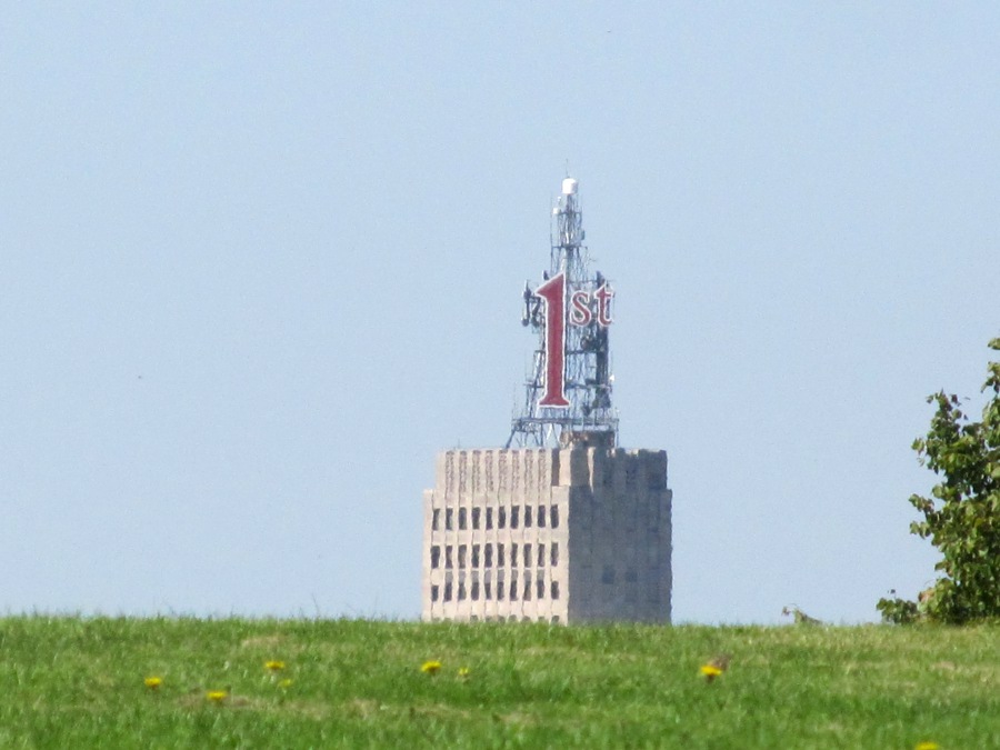 “While playing with the camera, I got this shot of the 1st National Bank building looming over a field of dandelions and butterflies at Indian Mounds Park.