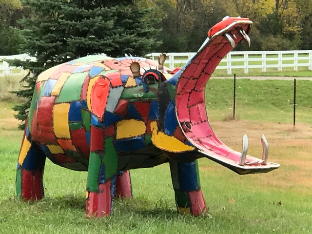 “Dale Lewis, a local artist, started welding stainless-steel sculptures a few years ago and has placed many of them around our area. This one is in a little park area near the intersection of 132nd Street East & Lock Boulevard on the northern outskirts of Hastings, Minnesota.