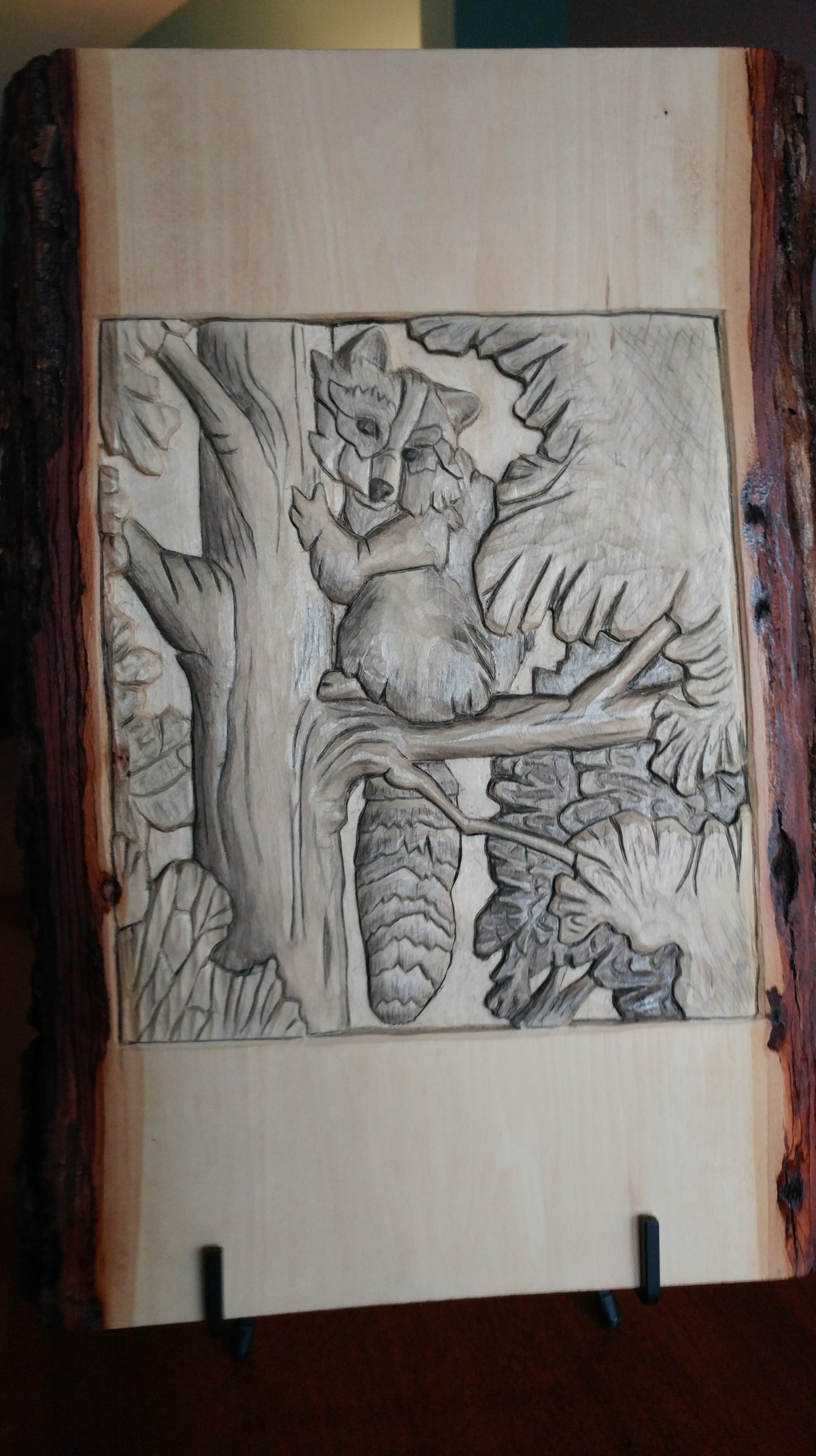 Dragonslayer of Oakdale: “I had just finished a relief carving of a raccoon in a tree and texted a picture to my family for their approval.