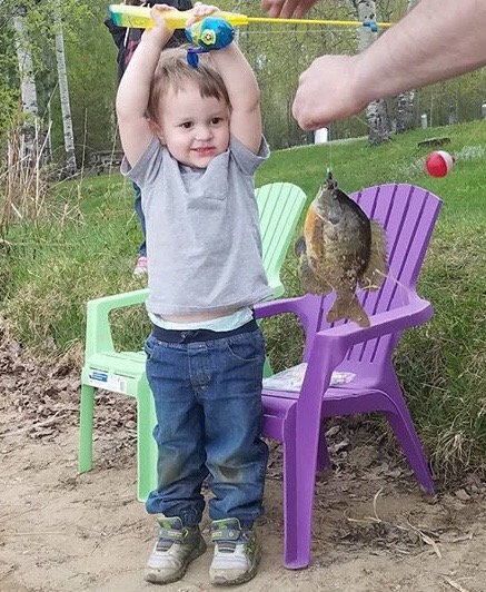 Vertically Challenged: “Two little cousins tried fishing for the first time. Little Luke is thrilled with his catch.