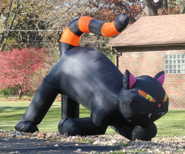 “There is also a very large, mean-looking black cat. Hope the trick-or-treaters don’t have nightmares after this.