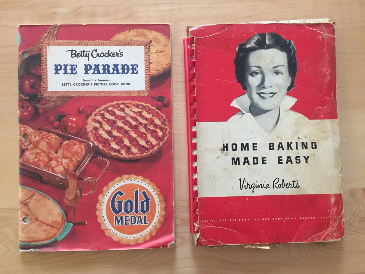 “Here are some small cookbooks. ‘Betty Crocker’s Pie Parade’ is from 1957. The ‘Home Baking Made Easy’ book is from 1944, and includes such useful information as how to determine the approximate temperature of your oven if you don’t have a thermometer.