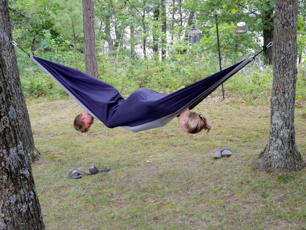 “Grandkids Mallory and Jameson don’t seem to mind, but this grandma thinks we should all work together to right the world . . . one hammock at a time.