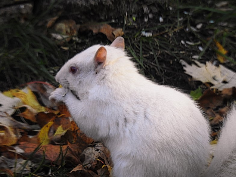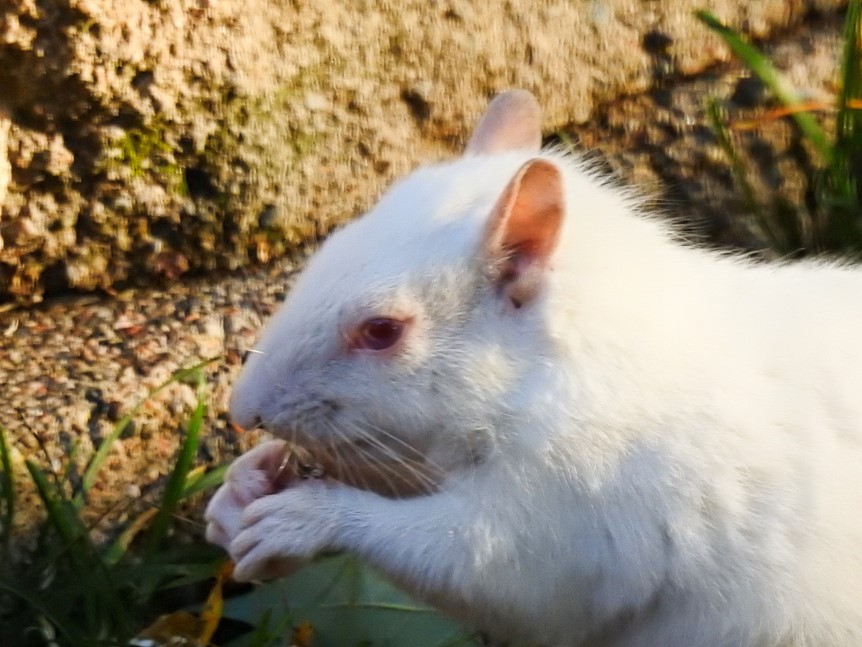 “Then a couple hours later, for the first time in over 40 years, we had a white albino squirrel also in our back yard.