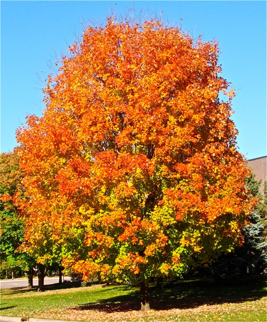 “Near the red tree was this one with variations in orange. I love the range of colors in the fall and how intense some are.