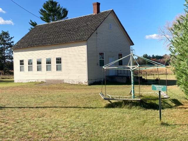 “We made some other stops in the area. We found an old cemetery that’s no longer in use (although some kind person keeps it mowed). We found the site of my mom’s and uncle’s one-room schoolhouse, although the building has been gone for years. We came across another old schoolhouse in the area, and this one has been well preserved. Note the old-fashioned (and no doubt dangerous!) merry-go-round.