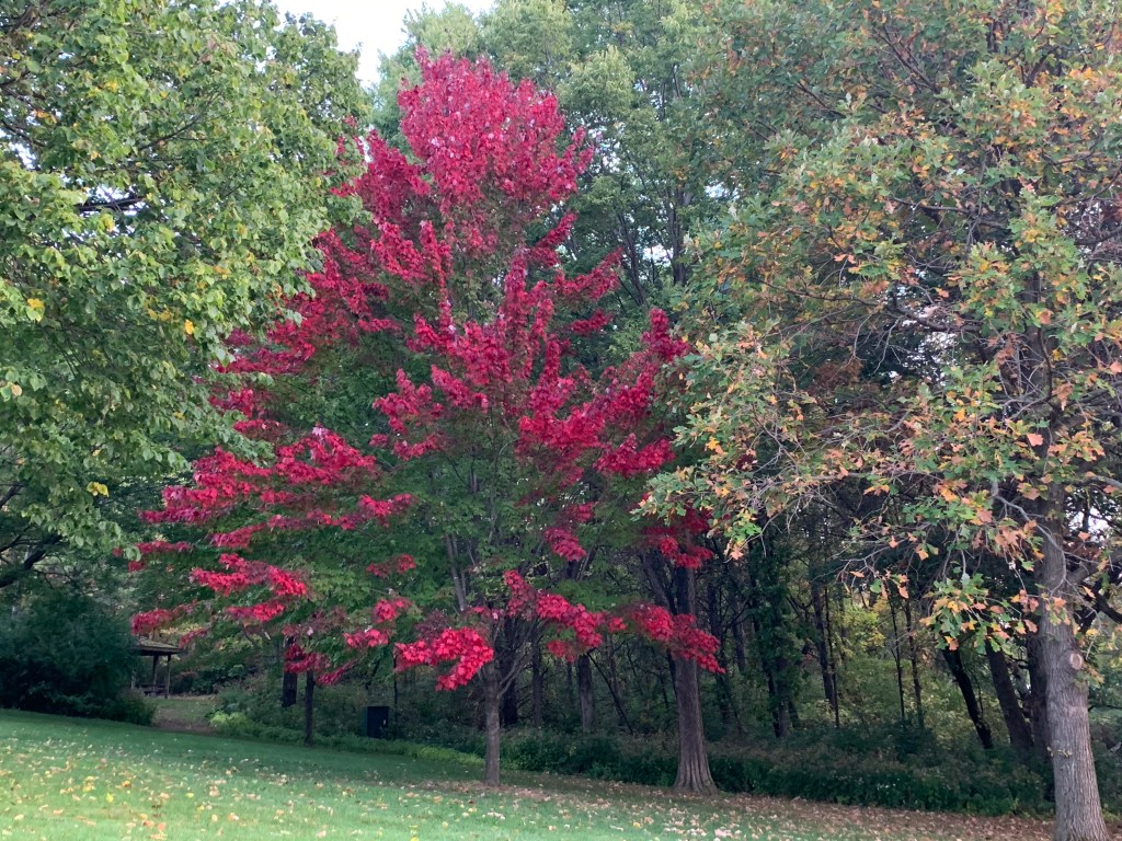 “That shot reminded me of this one I took towards the end of September of what I believe is also some sort of maple. (This particular tree is located near the bandshell on Normandale Lake in Bloomington.)