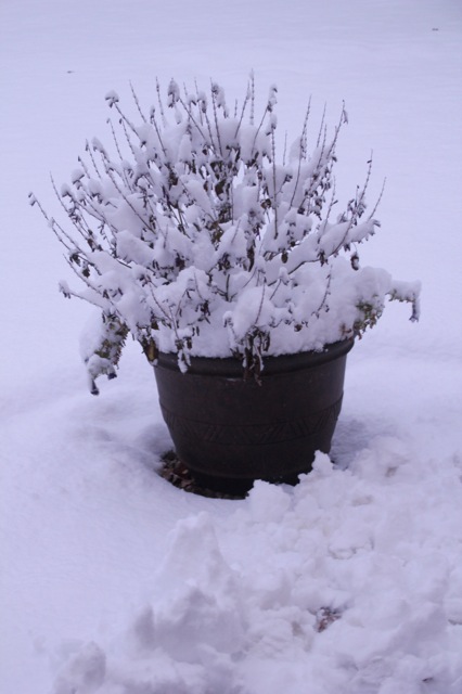 “Out front, the planter tub annuals, finished now after the frosts, got decorated by nature.