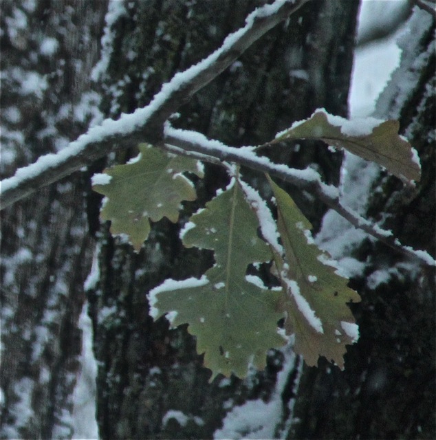“. . . and ‘flocked’ this cluster of oak leaves . . .