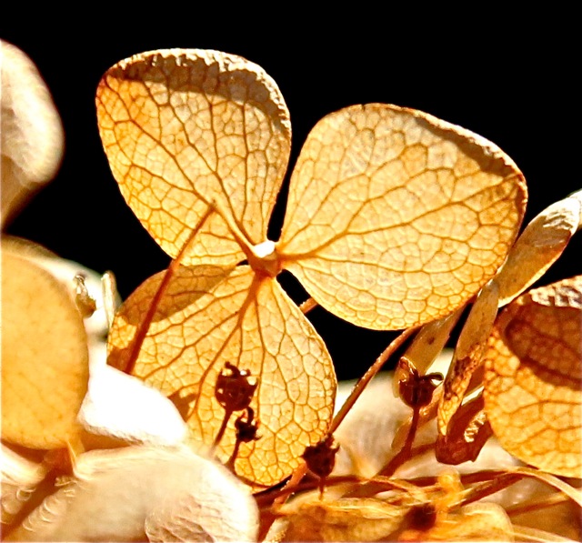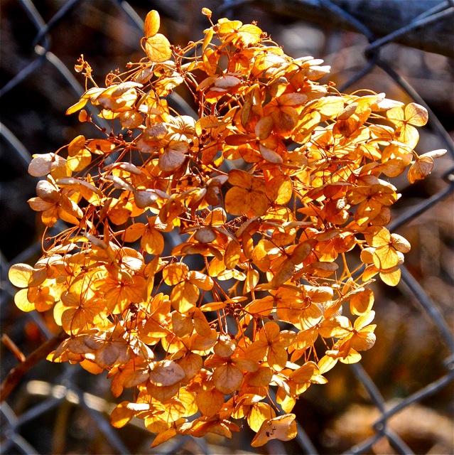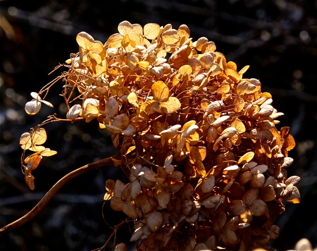 “I liked what I found, though you had to be close to get a good look at them. The hydrangeas had the showiest mass of dried petals.