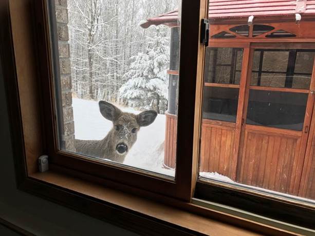 Another close encounter of the natural kind, reported by Steve Tarnowski of Duluth: “Morning visitor post-Duluth snow, the morning of December 21, 2020.”
