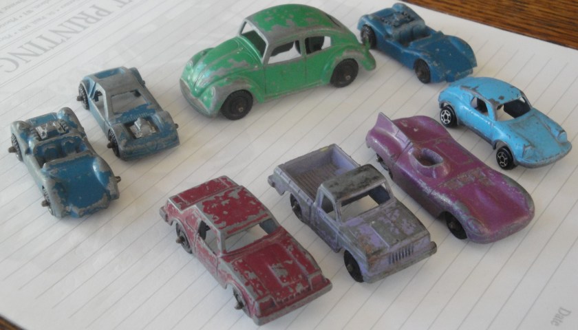 “Notable exceptions, however, are the metal toys made by Tootsietoy and Midgetoy. They were characterized by simple designs, especially for the cars. They were made with seven parts: a stamped metal body, two axles, and four hard rubber tires. We still have many surviving examples, and they are the favorites of the grandkids when they come over to visit.