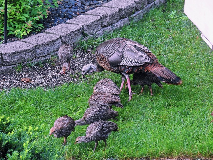 And now Wayne Nelson of Forest Lake reports: “This morning we had a mama turkey, with 11 of her babies, out for a morning food hunt.