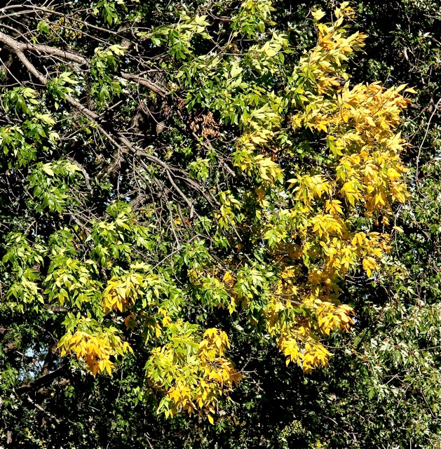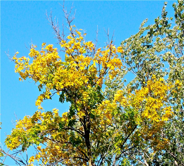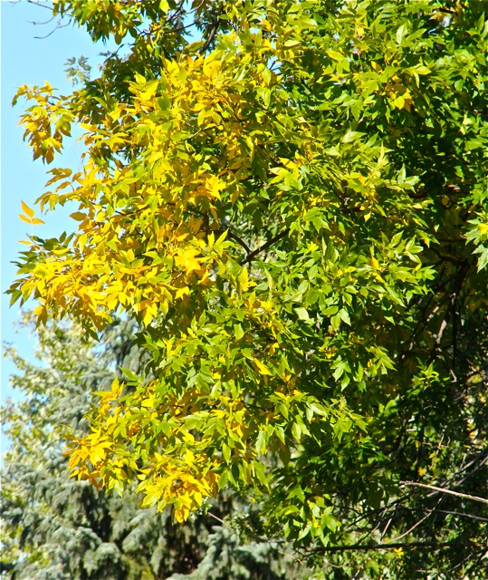 “Driving to a gas station, I passed this tree and really liked what I saw, so stopped on the way back to photograph it. It looked like a ‘celebration’ to me, with the ends of almost all the branches changed to yellow.