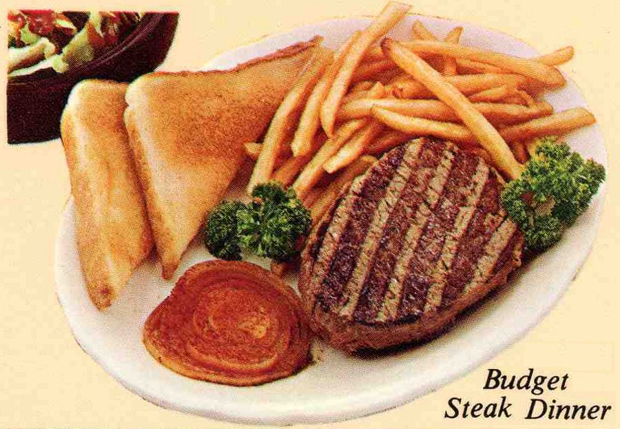 “Embers offered Steak, Fish, Seafood and Chicken Dinners, not to mention Steak and Seafood Sandwiches, Diet Delights, Franks and Country Ham sandwiches. (For some reason, all of the Franks were called ‘Mr. K,’ and the Country Ham sandwiches, ‘Mr. B,’ with multiple versions of each.)