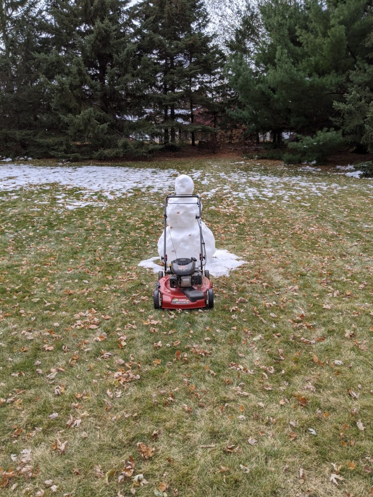 “Our grandsons had had fun making this guy, and while most of the snow had melted by that time, he was still hanging around.