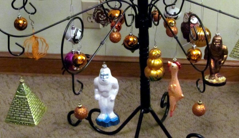 “However, thanks to Archie McPhee, a company best known for its rubber chickens, I’ve been able to supplement my decorations with some unique glass ornaments, including a Yeti, Bigfoot, a couple of pyramids, classic monster heads and, of course, a glass rubber chicken. Archee McPhee also supplied me with eyeballs, a mustache and punctuation marks.
