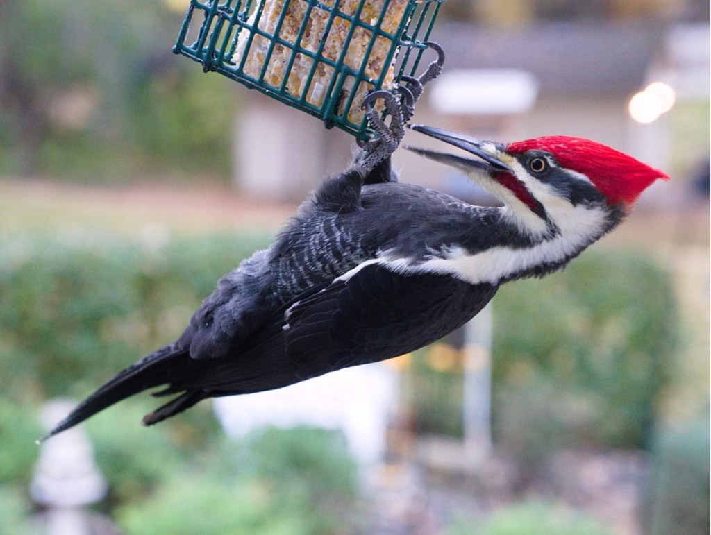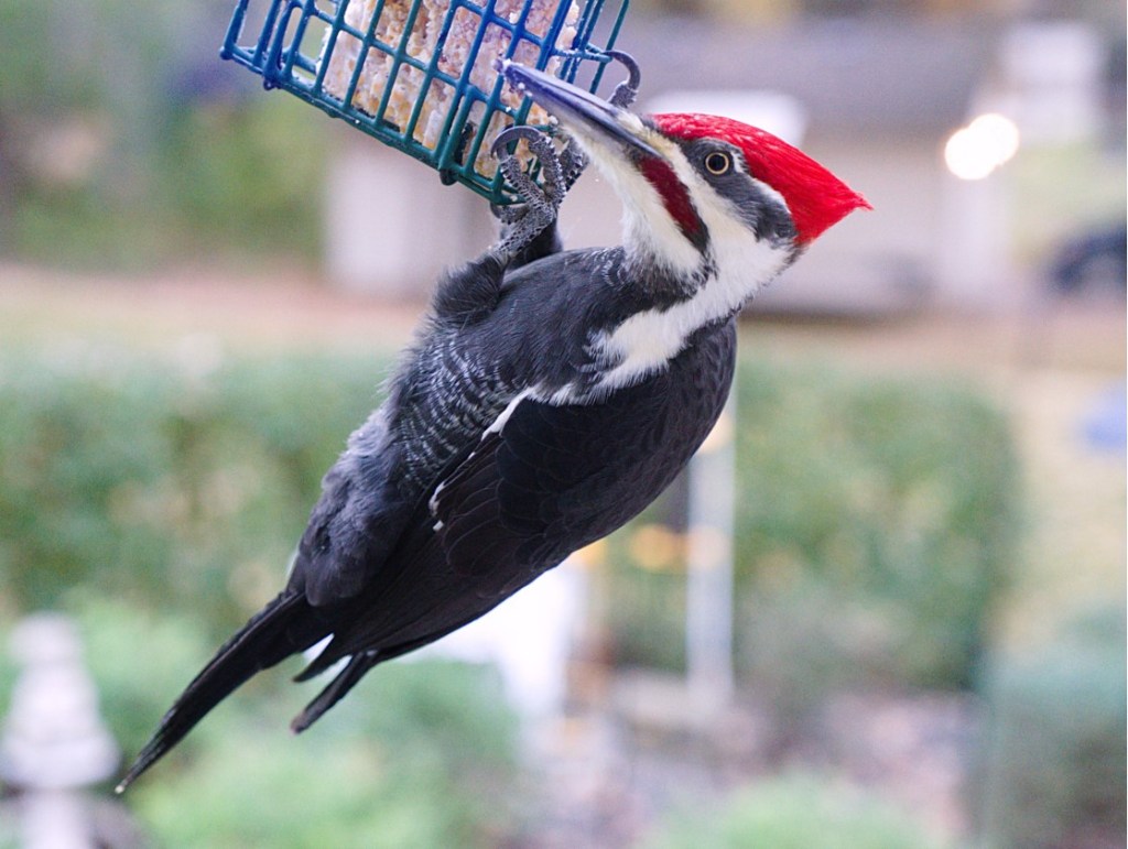 Wayne Nelson of Forest Lake: “My wife couldn’t figure out why the suet was always going down so fast. I think that I figured it out for her. There are two of these pileated woodpeckers that keep coming here all day long just for the suet. The suet is hanging right next to the back-porch window, which made for some good closeup pictures.”