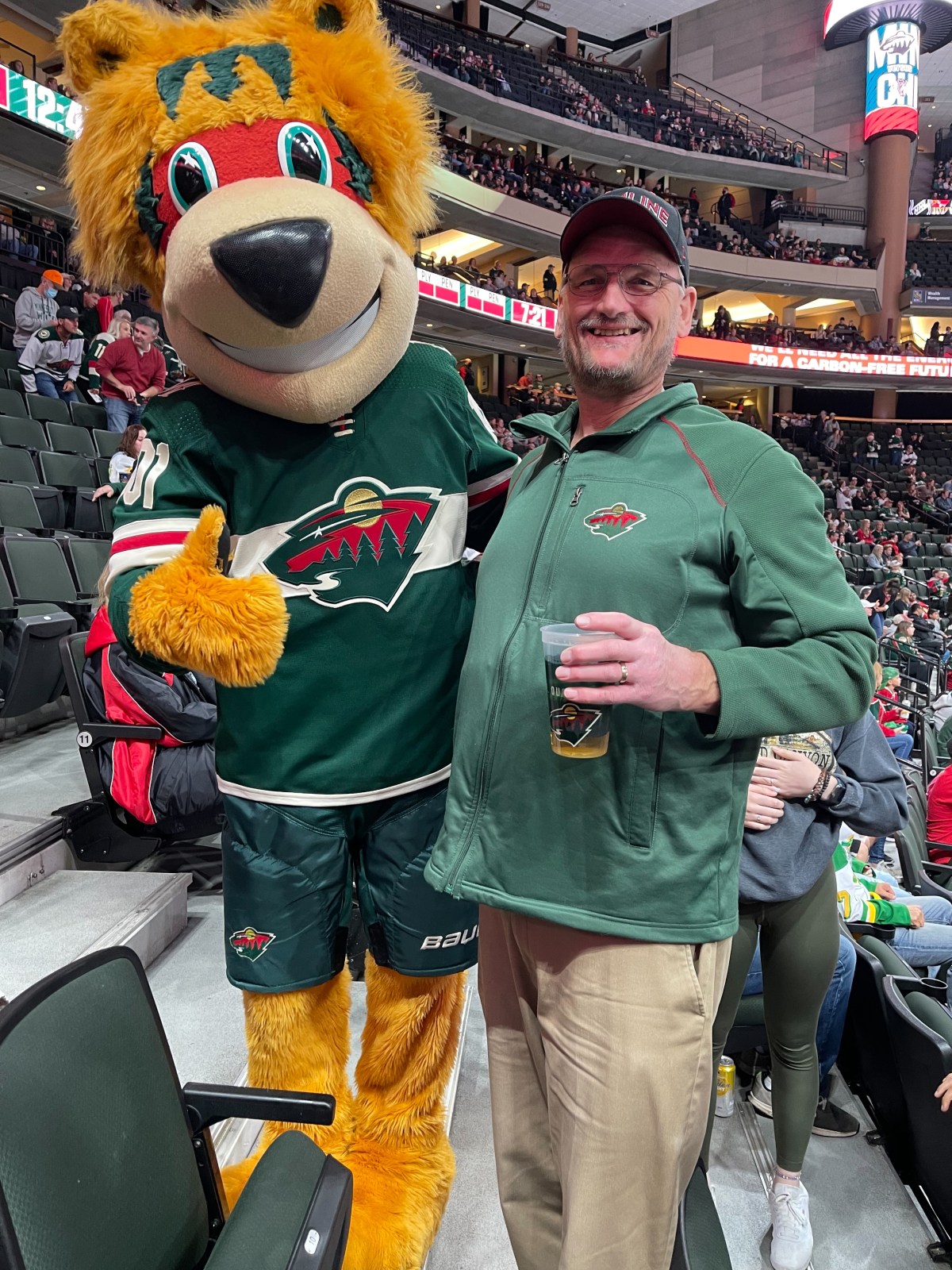 “Three relatives and I attended the October 7 Wild preseason game versus Chicago at the Xcel Energy Center. Fans will normally see the Wild’s mascot (Nordy) everywhere during the game; the Hy-Vee mascot (shopping-cart Zamboni) with groups riding onboard is seen on the ice only during the two intermissions.