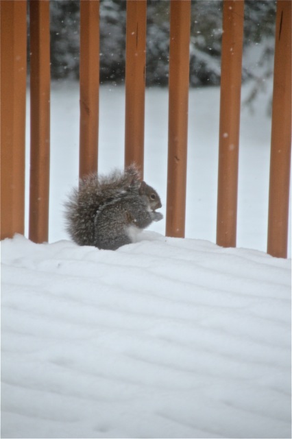 “One of the squirrels nesting in the nearby oak tree found something to munch on in one corner of the deck. There are two squirrels inhabiting the nest, so I expect to see some young ones come spring.