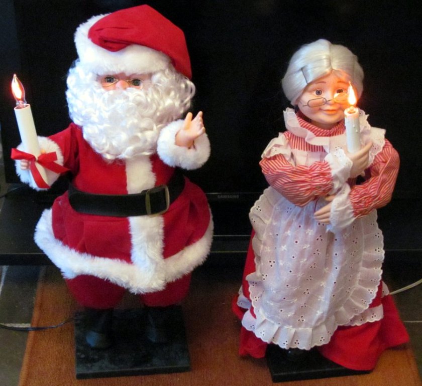 “Last but not least, we have animated Santa and Mrs. Claus. My brother and I gave them to my parents in the 1980s. They came from the late, great F.W. Woolworth Co. The animated Clauses still work, even though they creak and groan a bit as they move their heads and arms — as do many of us who are Older Than Dirt.