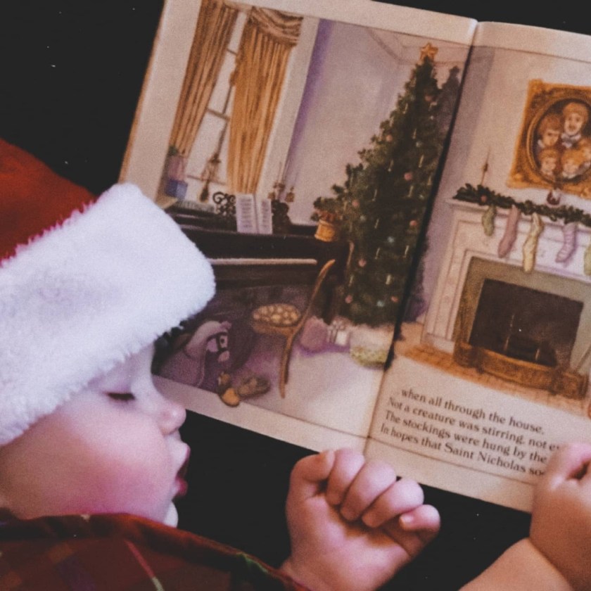 Vertically Challenged: “‘When all through the house, not a creature was stirring . . .’ — and not even little Elliot Jane, who got too tuckered out reading. I love this pic!”