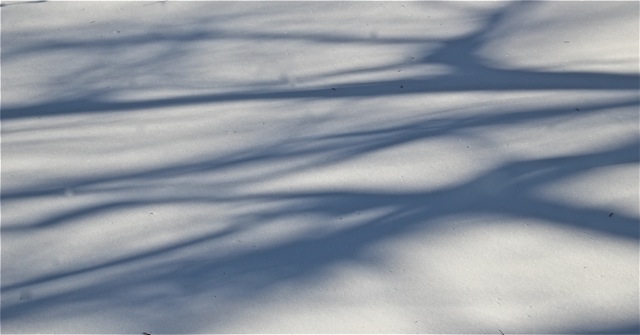 “With the heavier snow we got, followed by some serious cold, I noticed both the front and back yards were track-free. The smooth, white snow made a palette for abstract shadow patterns.