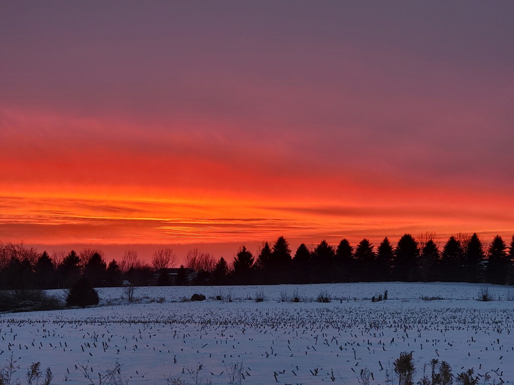 Grandma Paula reports: “I had a chance to try out my new phone to see how well it takes photos. I could not pass up the red sunset.”