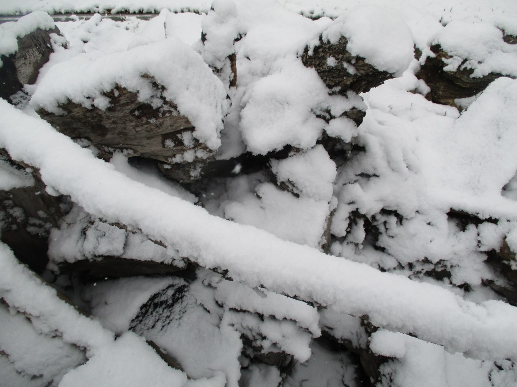 “Last Friday was too cold to be out, even in a down coat. Today the sun was warm; I probably don’t need even my parka, and much melting was going on. To help the ice melt, I used my wooden walking stick to pound the edges of ice along the sides of streets where we park.