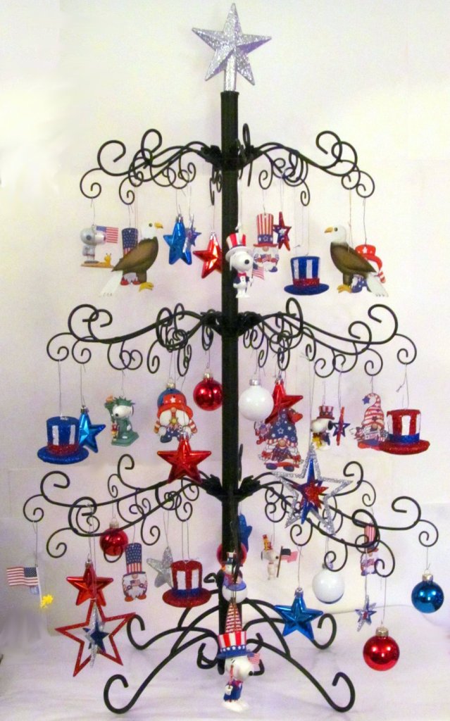 “It has lots of red, white and blue things, including gnomes, Snoopys, Uncle Sam hats, stars and bulbs, with a couple of bald eagles thrown in for fun. That should do it.”