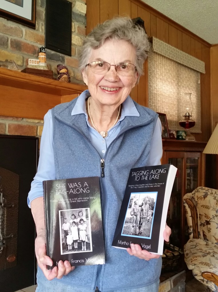 “My mom received copies (just in the nick of time for her party) of her second published book, ‘Tagging Along to the Lake,’ and was able to sign them for guests. She was a bit shy about it, but I teased her that it was good practice for any future book-signing tour. She was not amused with me, her own little tag-along, at that moment, thinking that I might be serious. It was quite wonderful to see and hear of all the joy her first book, ‘She Was a Tag-Along,’ has brought to family, friends, and neighbors, but most of all to my dad, who was busting his buttons with pride at her accomplishment.