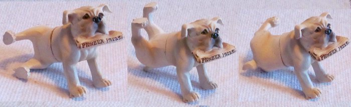 Gregory J. of Dayton’s Bluff, again: “In the not-too-distant past, the St. Paul Pioneer Press newspaper used a logo of a bulldog’s head with a copy of the Pioneer Press in its mouth. Apparently this begat a little tchotchke that I found on eBay.