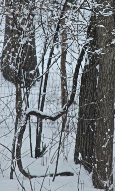 Mounds View Swede: “I looked out the back windows with interest to see what the recent snowfall brought to the scene. I like how the wet snow clung to all the branches, especially the small twigs.