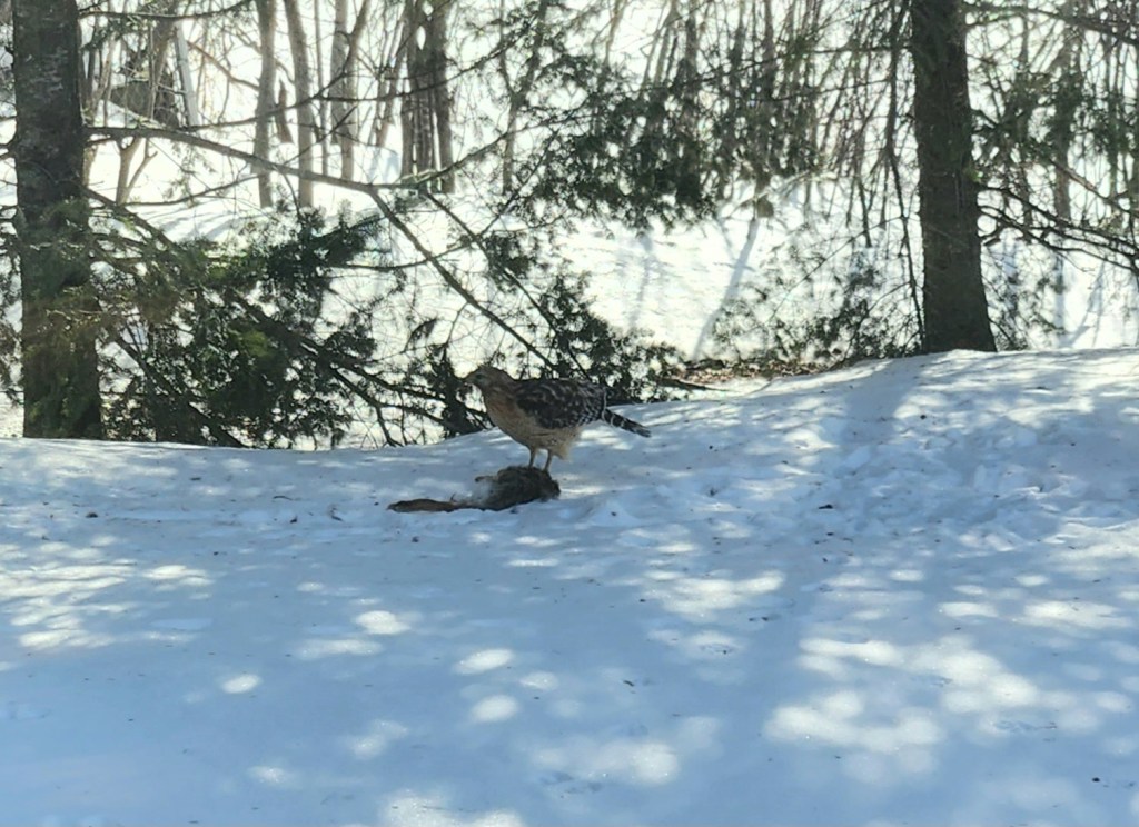 “We had two visitors to the back yard in the last couple of weeks — both chomping down on unlucky rabbits.