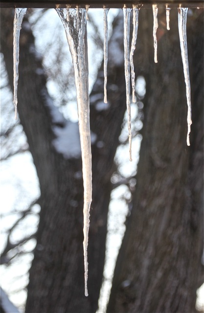 “As the day continued to warm, I heard a noise out back. All the icicles had fallen to the deck. Tomorrow’s another day, and maybe a fresh batch will form again.”