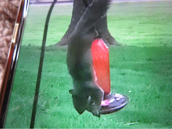 Lola: “This squirrel thinks he — or she — is a hummingbird.”