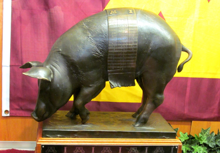 “And, of course, every year the media make a big deal of recounting the history of Floyd. The original Floyd was a real hog, but in 1935 it was decided that a scaled-down bronze statue of Floyd would be more practical. Minnesota Gov. Floyd Olson commissioned such a statue.